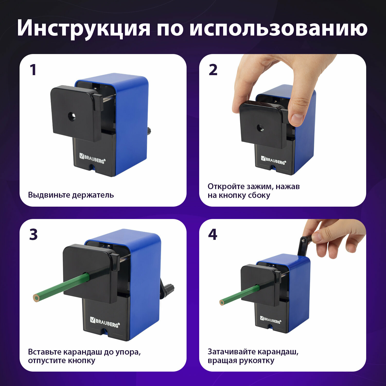 СохранитьТочилка механическая Brauberg Universal, крепление к столу, металлический механизм, чёрный/синий интересное: