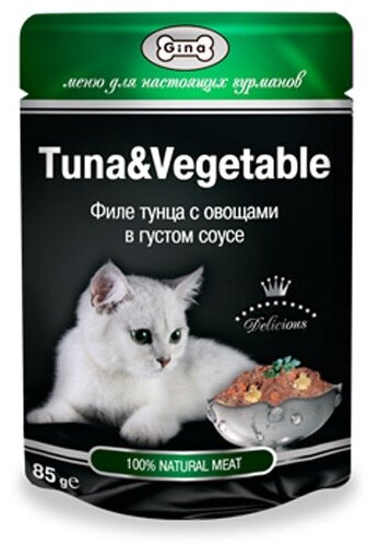 Корм для кошек консервированный Gina Tuna & Vegetable, тунец с овощами в соусе, пауч 85 г (24 шт.)