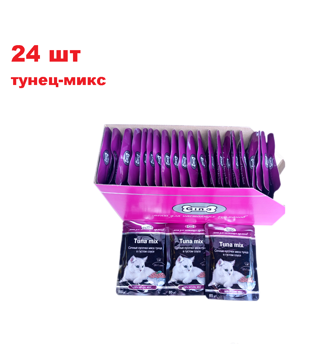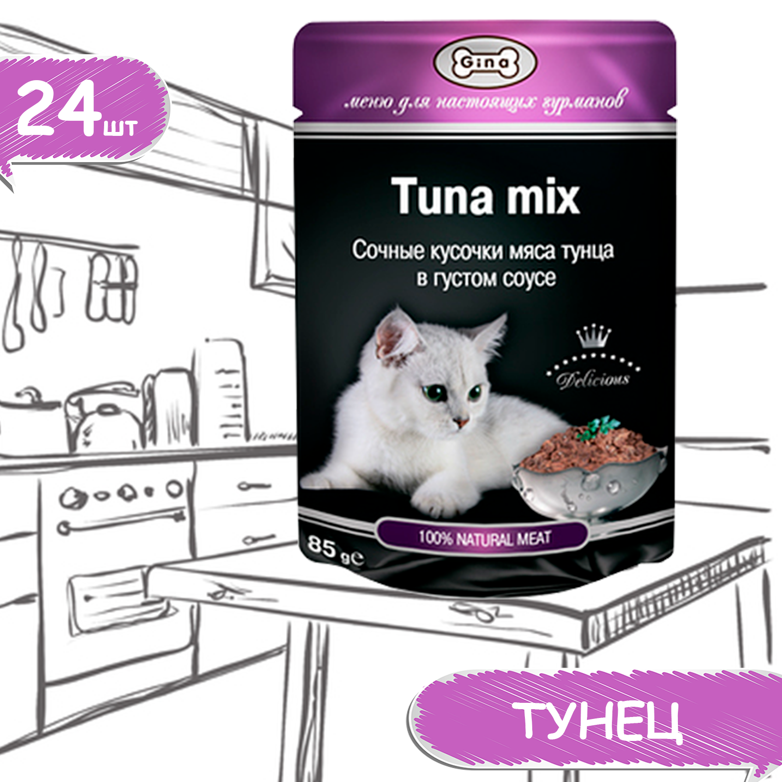 Корм Gina Tuna Mix (в соусе) для кошек, с тунцом микс, 85 г x 24 шт