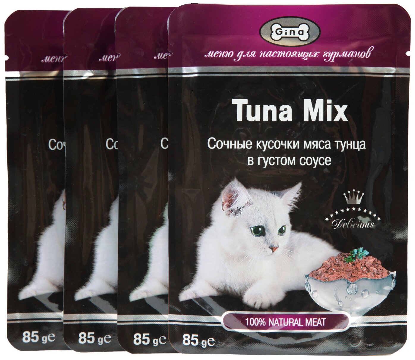 GINA TUNA MIX пауч для кошек сочные кусочки мяса тунца в густом соусе 85г