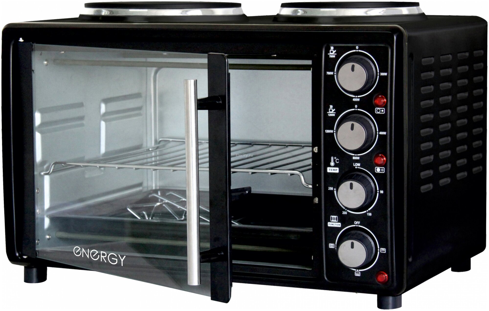 Мини-печь Energy Gн25-в, 1400 Вт, 25 л, 90-250C, 2 конфорки, чёрная Energy 9461865 .