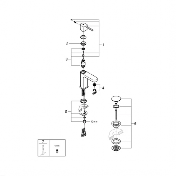 Смеситель для раковины GROHE Plus, гладкий корпус, с нажимным донным клапаном, S-Size, хром (33163003)