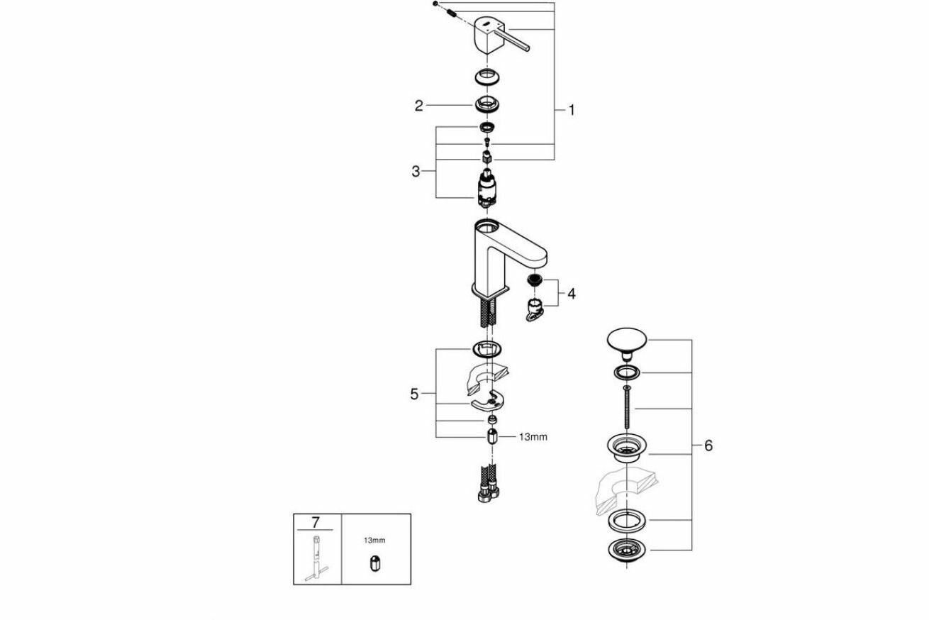 Смеситель для раковины Grohe Plus S-Size, нажимной сливной гарнитур, хром 33163003