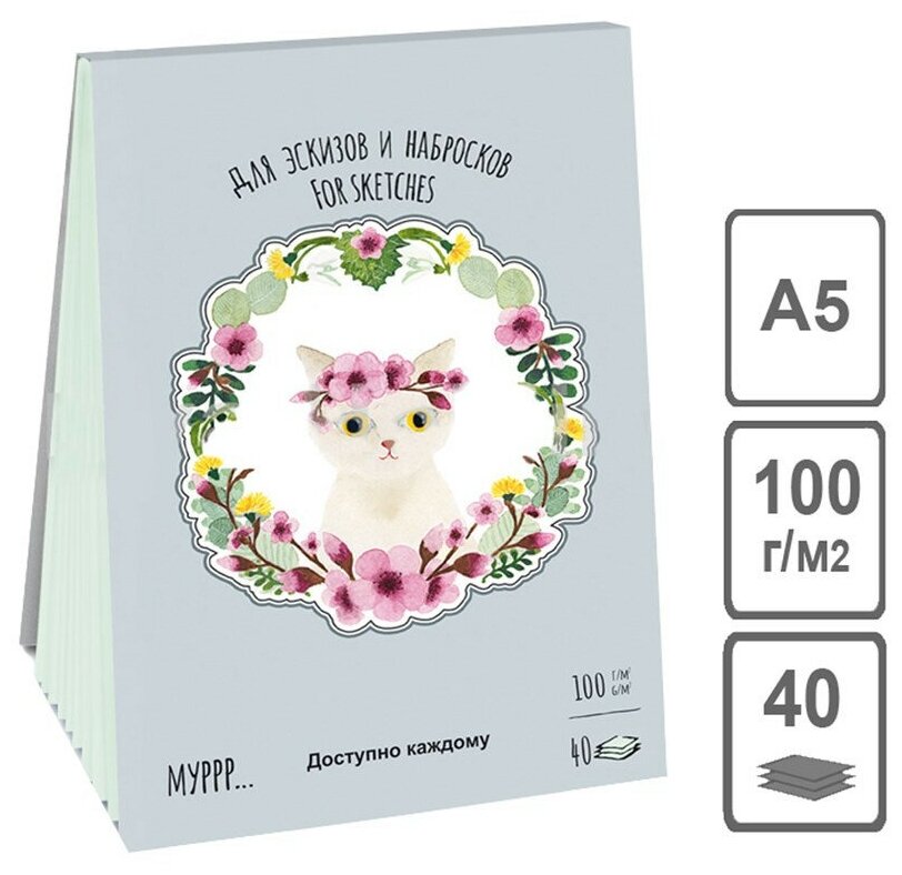 Скетчбук - планшет 40л., А5 Лилия Холдинг "Времена кошек. Весна", на склейке, 100г/м2, светло-зеленый