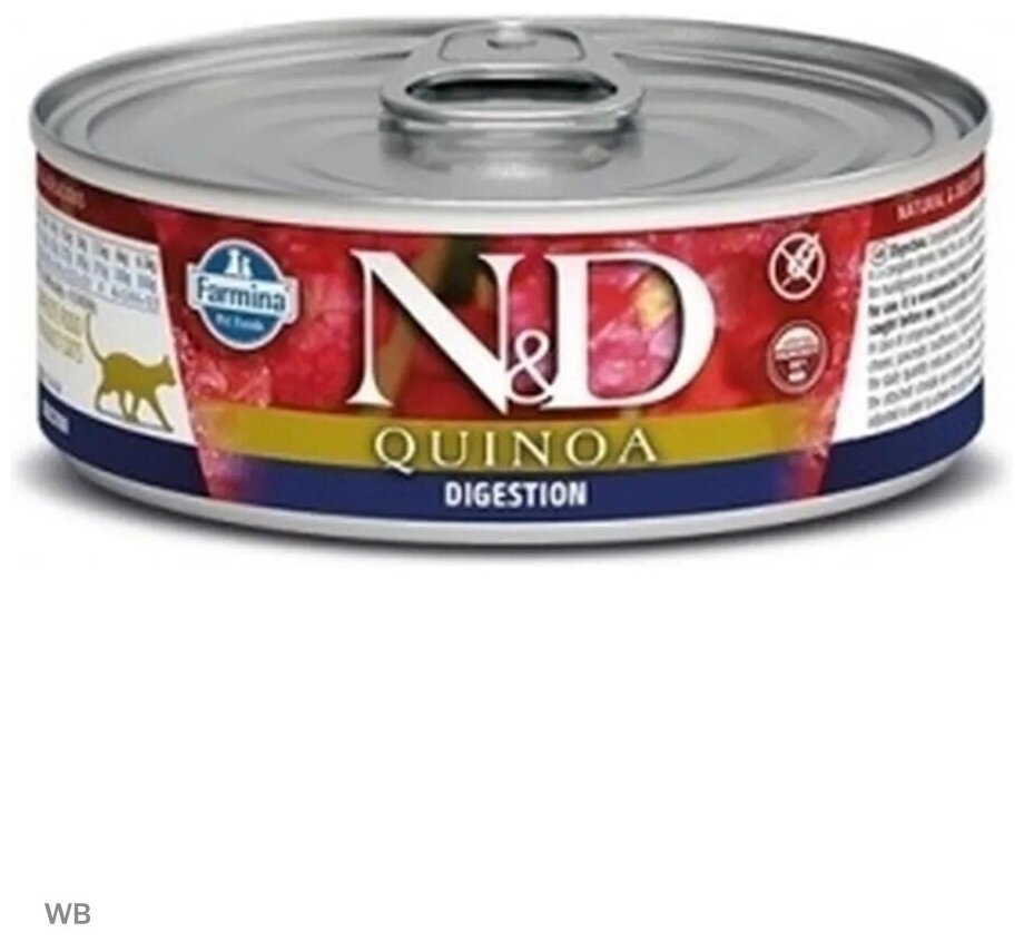 Корм для кошек FARMINA N&D Quinoa с киноа, для поддержки пищеварения банка 80г (упаковка - 12 шт)