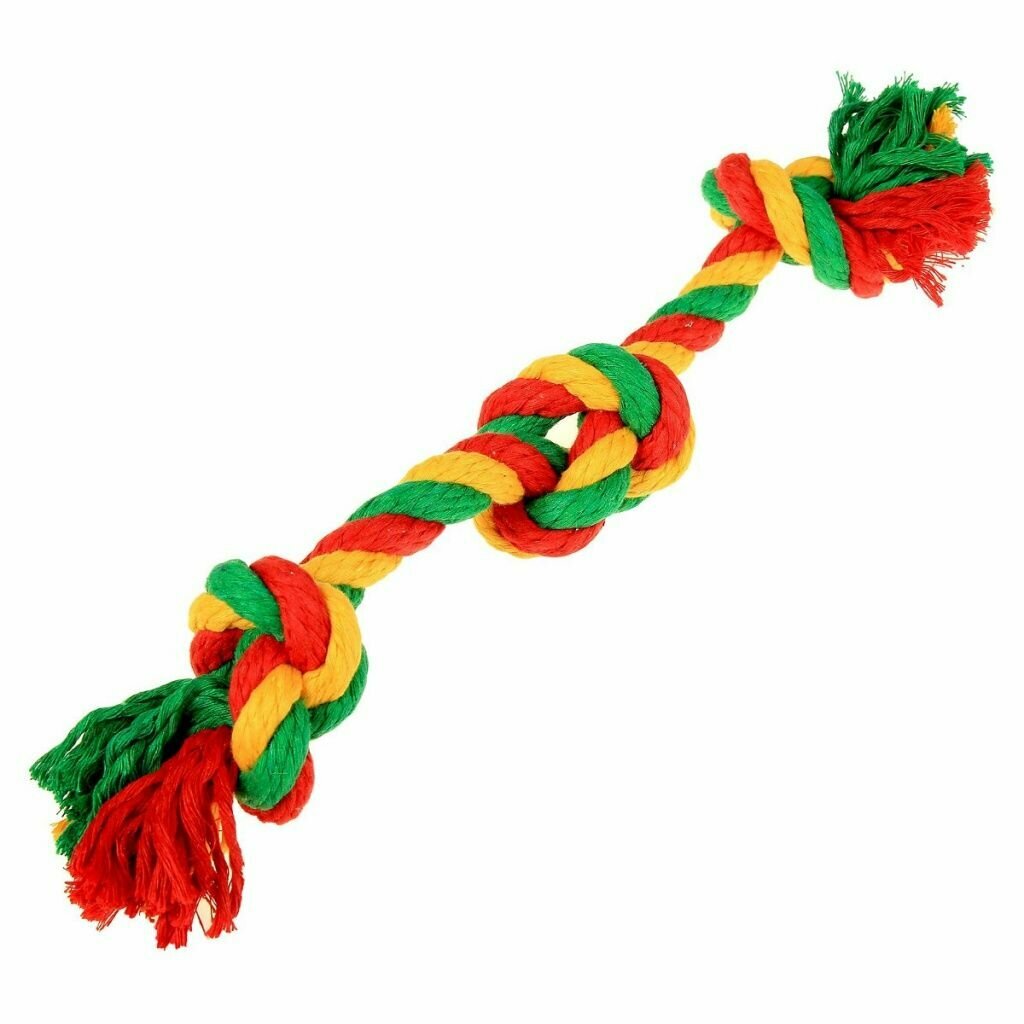Игрушка для собак Doglike Грейфер канатный 3 узла Dental Knot Средний (Красный-желтый-зеленый)