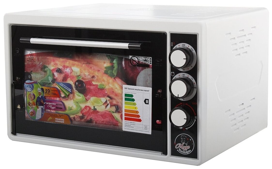 Мини-печь "чудо пекарь" ЭДБ-0124/духовка электрическая настольная (цвет белый, 39 л, 1 противень, толстый нержавеющий ТЭН повышенной мощности, таймер, гриль, терморегулятор)