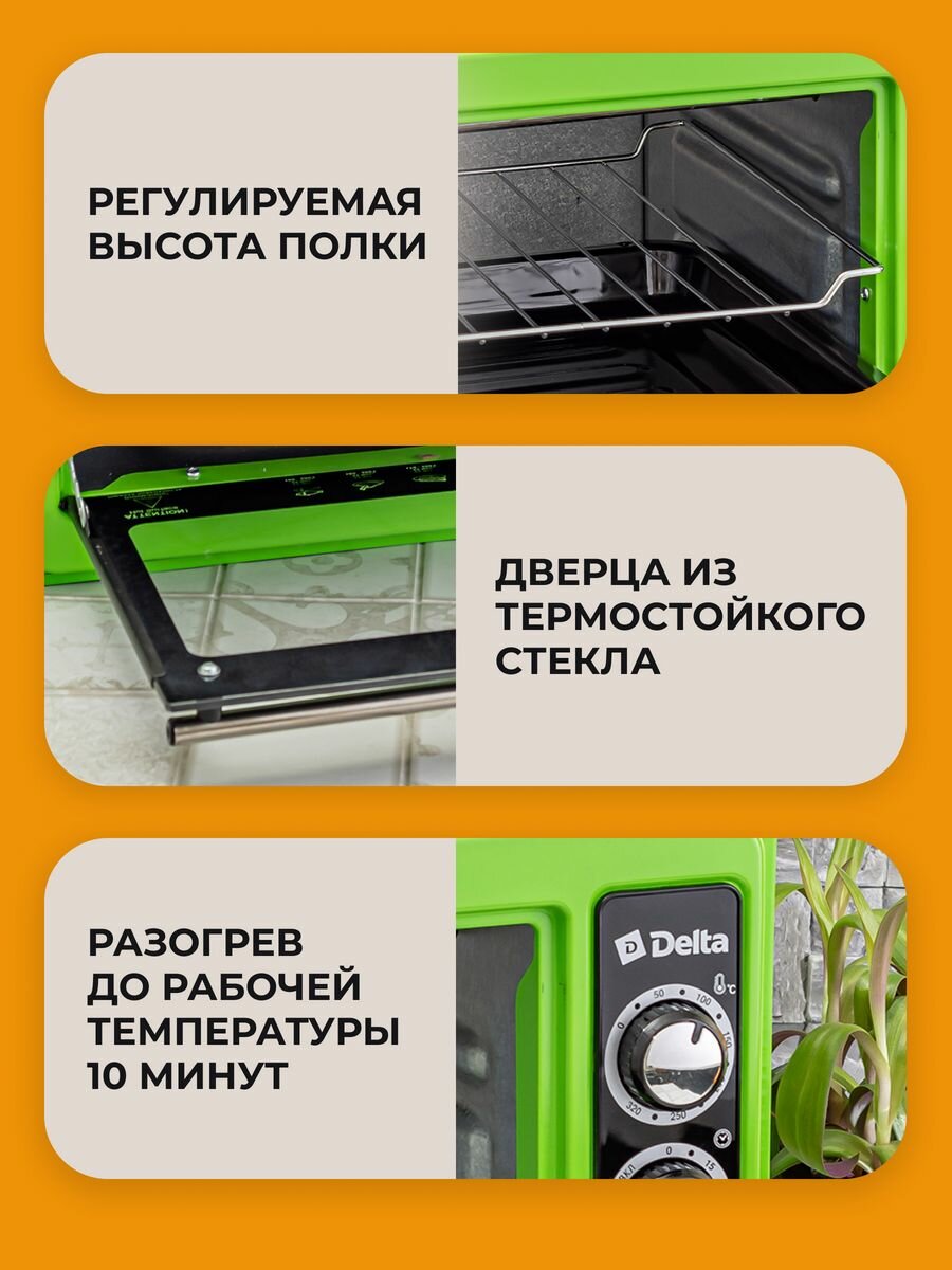 Духовка электрическая Delta-0123 1300W 37 л таймер зеленая