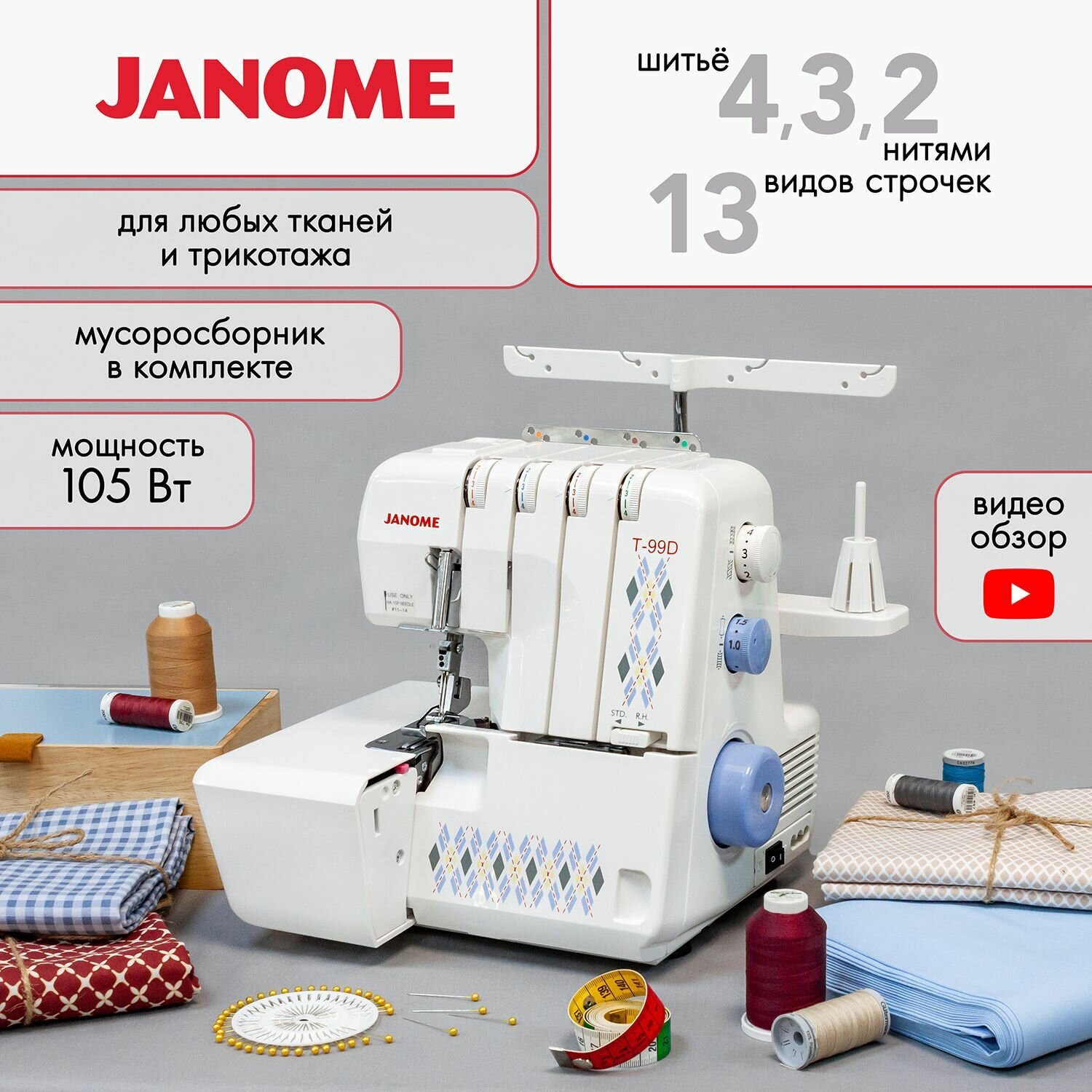Ниже Вы можете прочитать отзывы на Оверлок Janome T-99D, ознакомится с подробными характеристиками, посмотреть интересные обзоры и фотографии на Оверлок Janome T-99D.