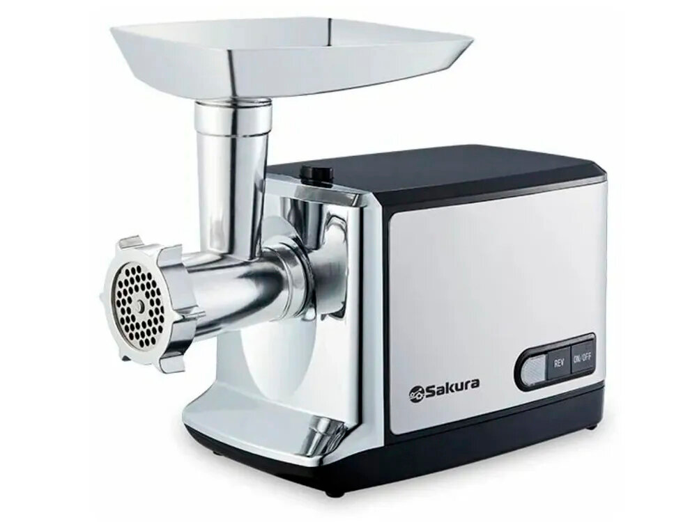 Мясорубка Sakura Sa-6419bk, 2000 Вт, 2 кг/мин, реверс, серибристо-чёрная Sakura 9438291 .
