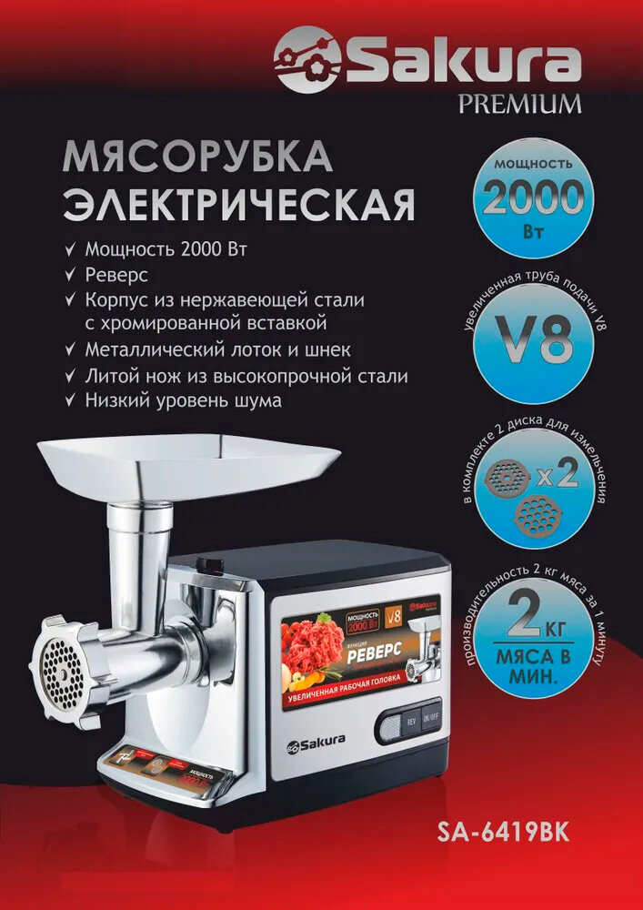 Мясорубка Sakura SA-6419BK Premium интересное: