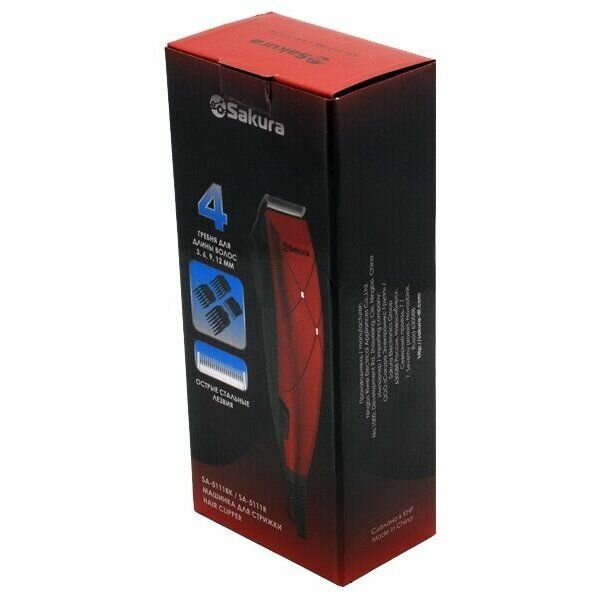 Машинка для стрижки Sakura - SA-5111R, 4 насадки, красная, 1 комплект