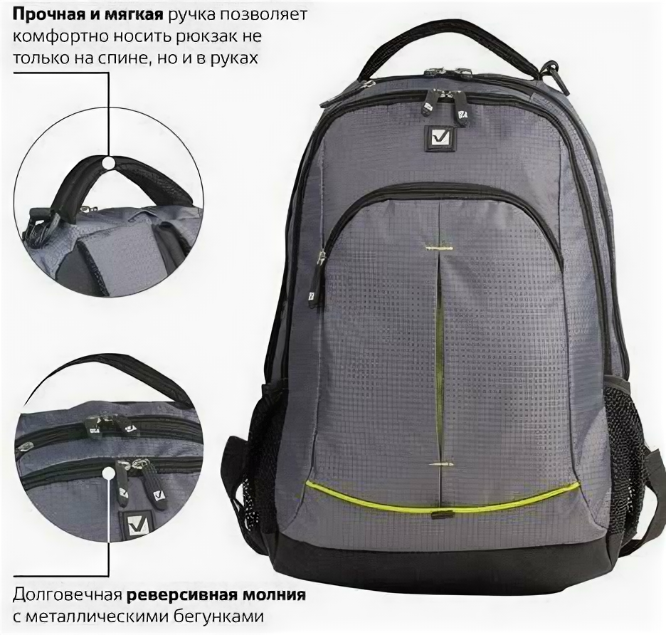 Рюкзак универсальный 2 отд Brauberg Delta Lime insert 49*33*18см серый 225293