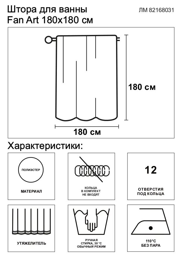 | Размер шторы | 180х180 см |