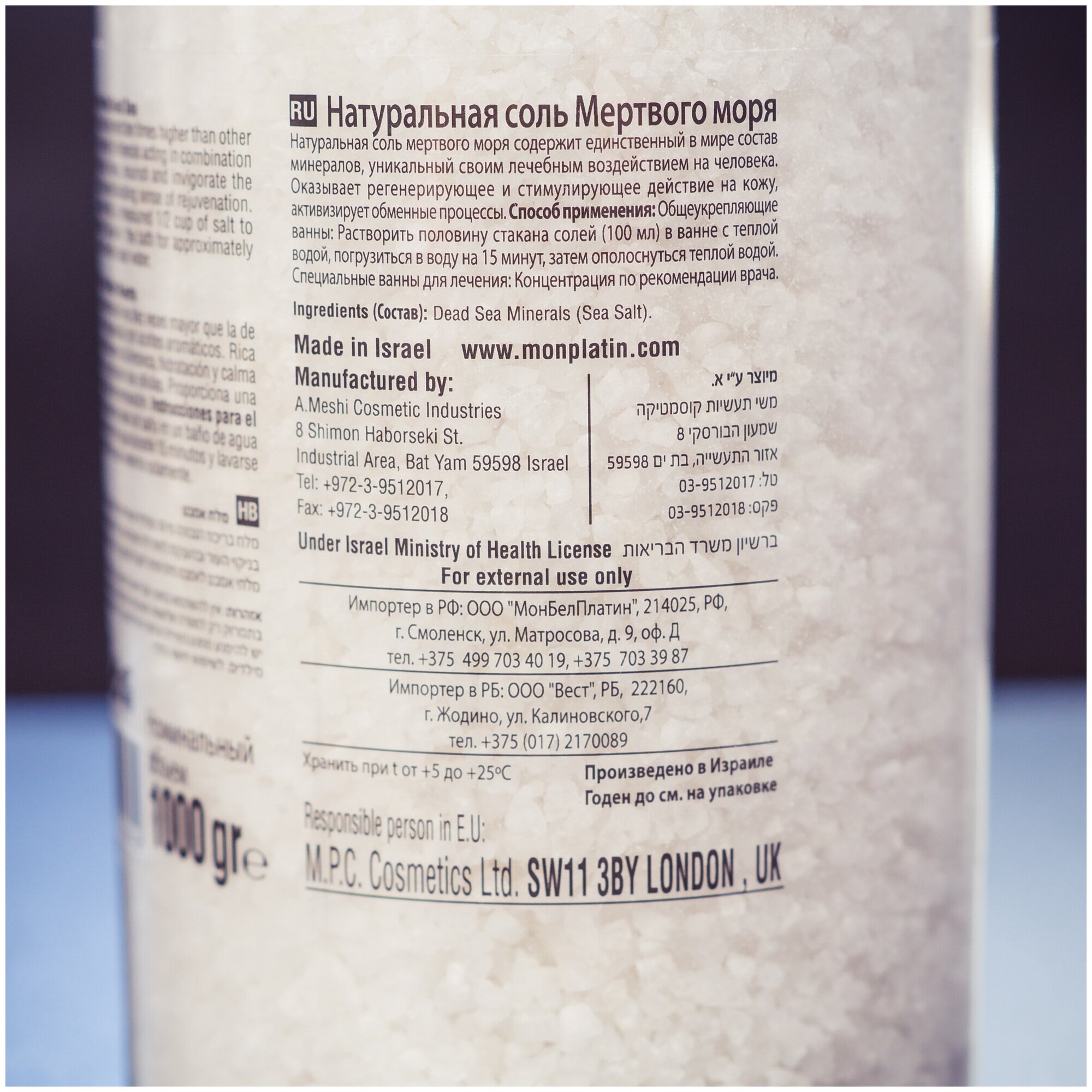 Купить Mon Platin DSM, Натуральная Соль Мёртвого моря белая 1000 г.