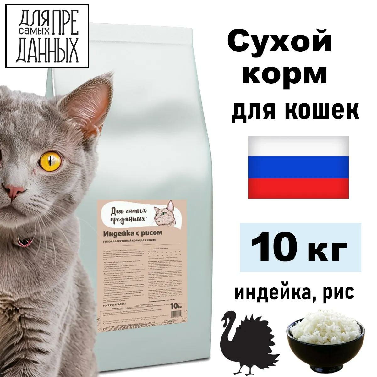 Сухой корм для кошек Для самых преданных, индейка с рисом 10 кг