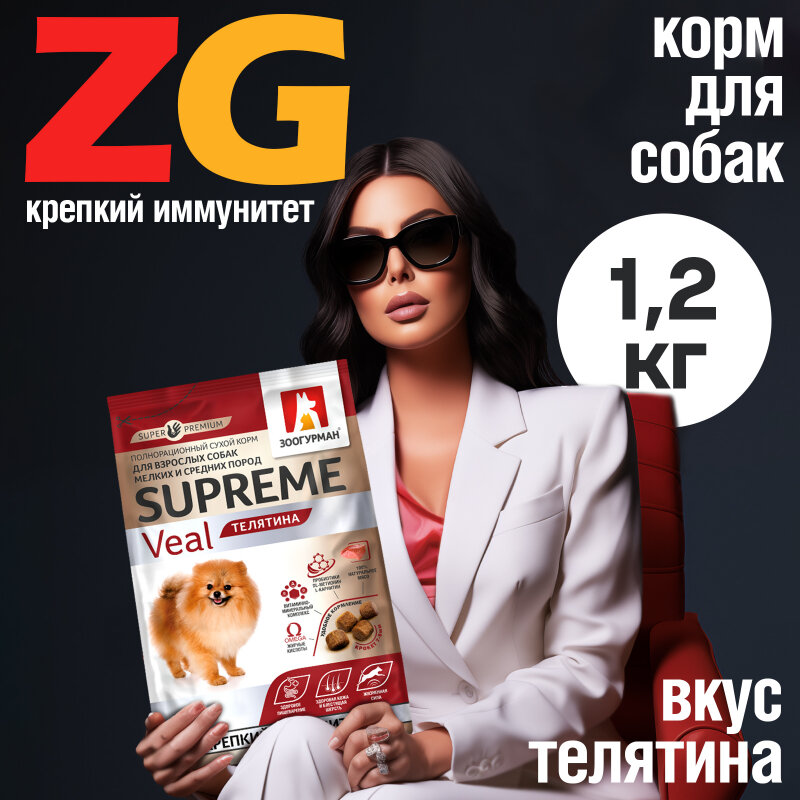 Зоогурман Supreme сухой корм для взрослых собак мелких и средних пород с телятиной - 1,2 кг