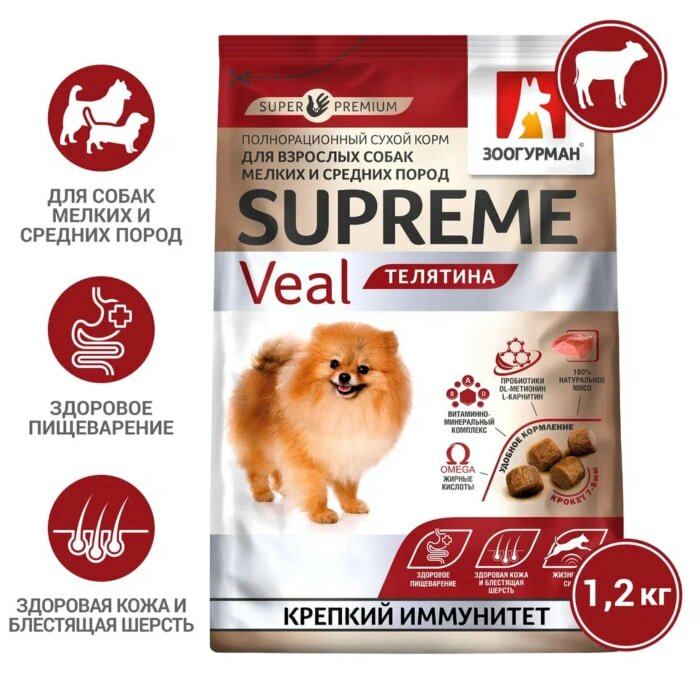 Зоогурман Supreme сухой корм для собак мелких и средних пород со вкусом Телятины 1,2кг