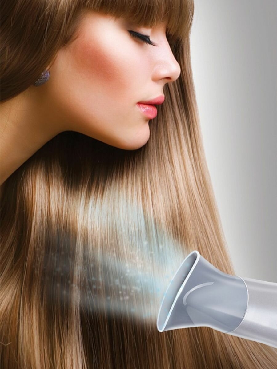 Бережно относится к волосам - не пересушивает и не сжигает. А ионизация спасает их от электризации, волосы после сушки не липнут к расческе и одежде