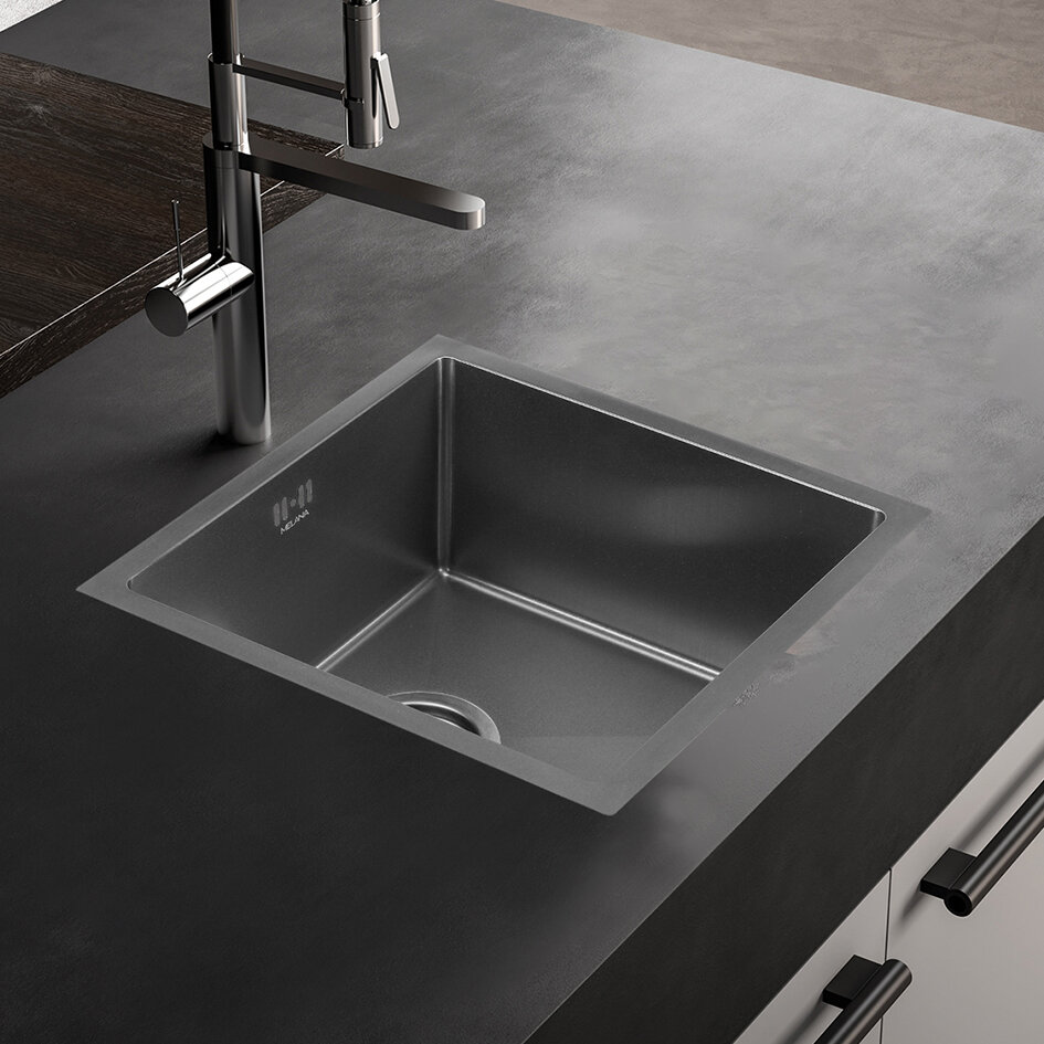 Мойка из нержавеющей стали MELANA D4545HB графит ProfLine 1,2/220 цвет графит, врезная подстольная, квадратная