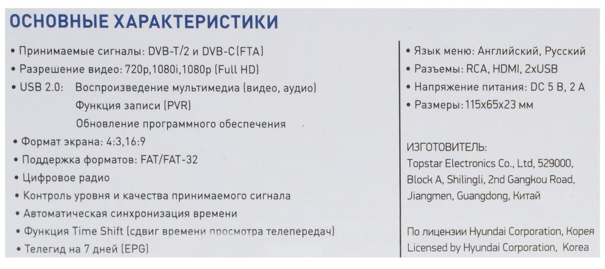 Ресивер DVB-T2 Hyundai H-DVB460 черный интересное: