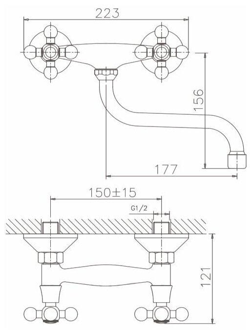 Смеситель для кухни настенный 1/2 кер HB4319 HAIBA Крест нижний излив^m