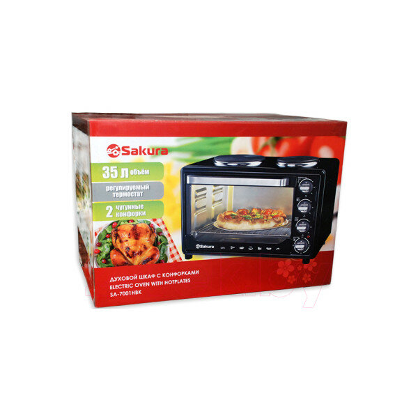Духовка электрическая Sakura SA-7001HBK 3200Вт 35л+2конфорки,чёрный