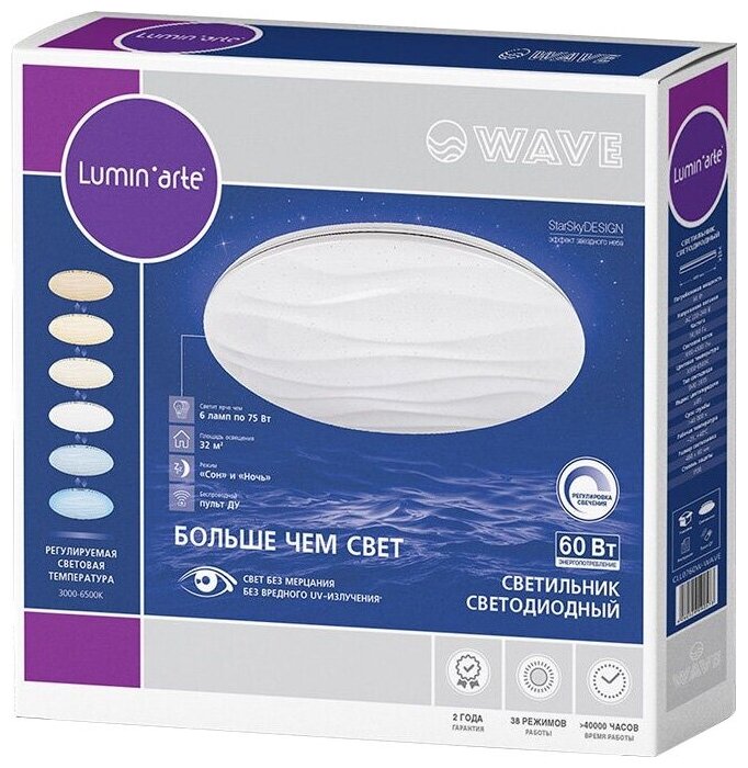Ниже Вы можете прочитать отзывы на Управляемый потолочный светильник Lumin'arte CLL0760W-WAVE, 60W, пульт, ознакомится с подробными характеристиками, посмотреть интересные обзоры и фотографии на Управляемый потолочный светильник Lumin'arte CLL0760W-WAVE, 60W, пульт.