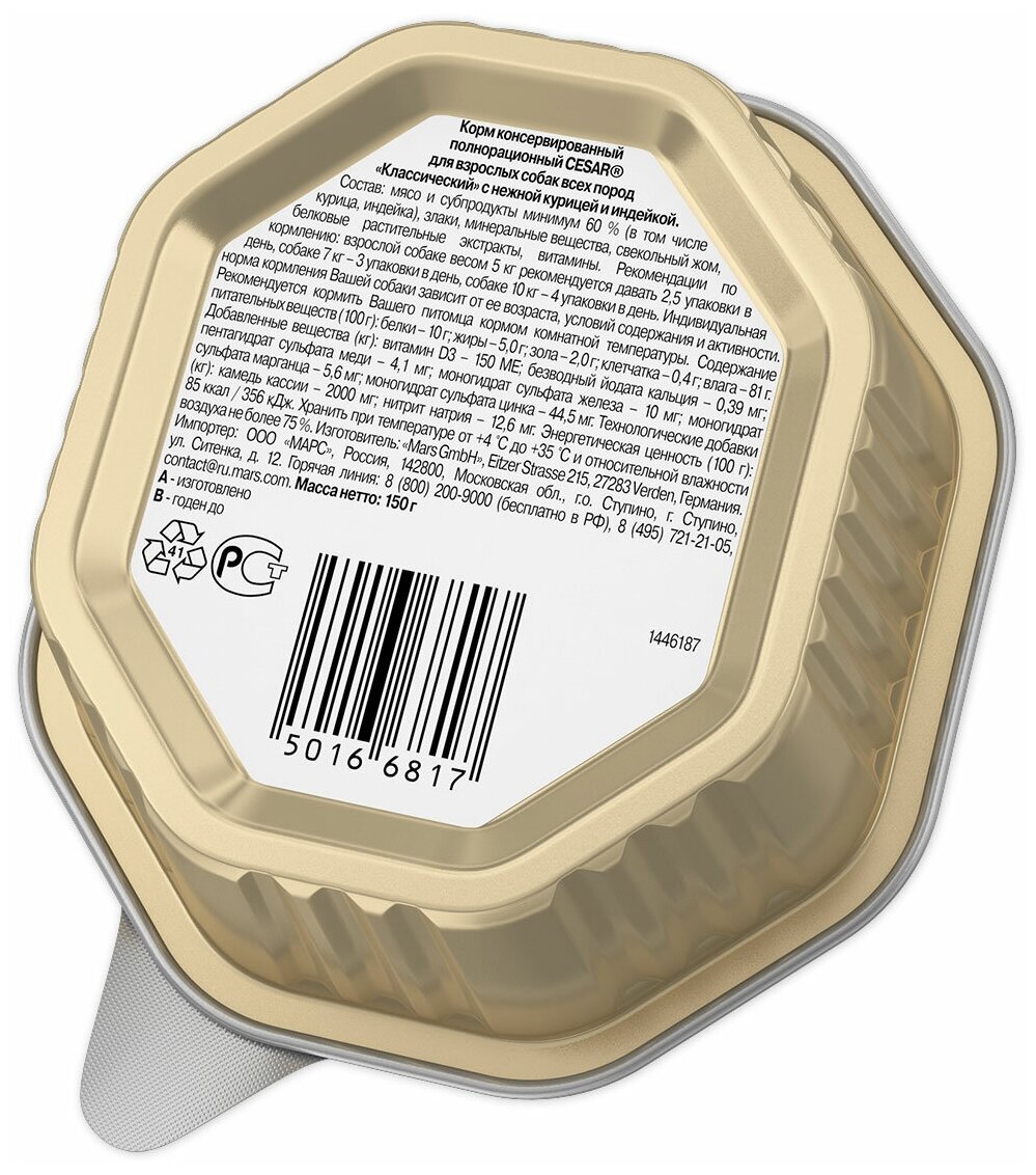 Ниже Вы можете прочитать отзывы на Корм для собак Cesar консервы паштет Курица/Индейка 7х150гр, ознакомится с подробными характеристиками, посмотреть интересные обзоры и фотографии на Корм для собак Cesar консервы паштет Курица/Индейка 7х150гр.