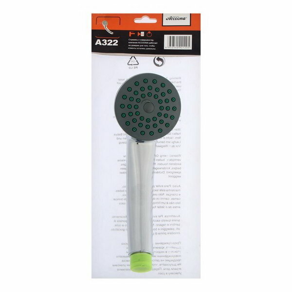 Душевая лейка Accoona А322, 1 режим, корпус пластик, цвет хром./В упаковке шт: 1