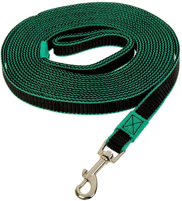 Поводок зооник капроновый с двойной латексной нитью зеленый для собак (7 м/20 мм)