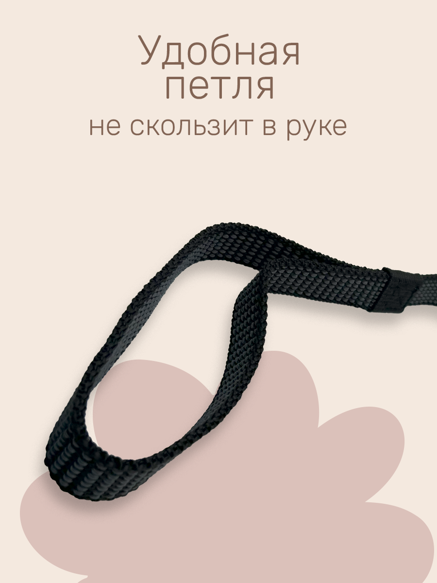 Первое время в руках стропа жестковата, но уже через неделю использования удобно ложиться в руку. Мы используем и для прогулок, и для занятий на дрессировочной площадке. |