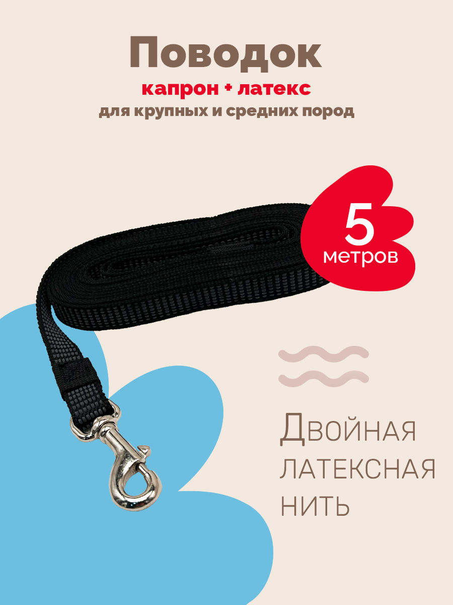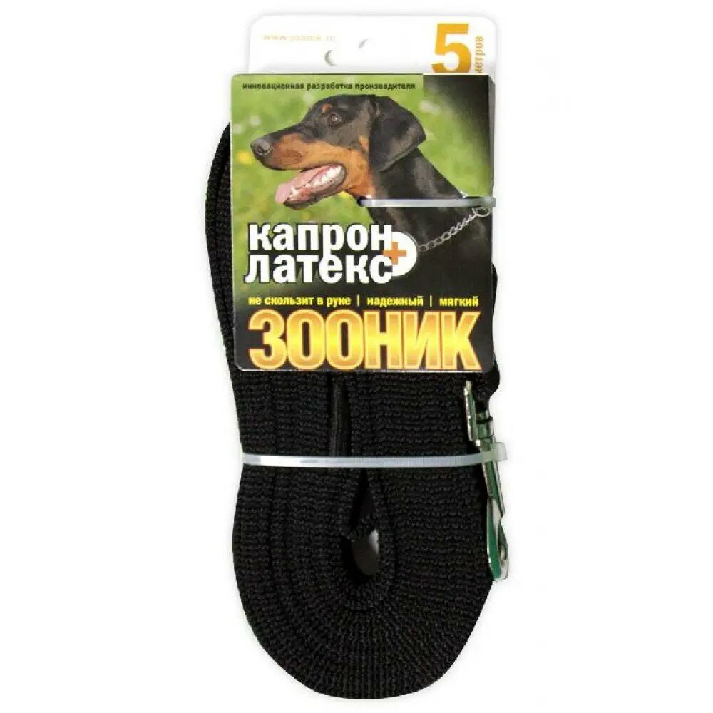 Поводок для собак 20 мм Зооник капроновый с двойной латексной нитью черный 5 м (1 шт)