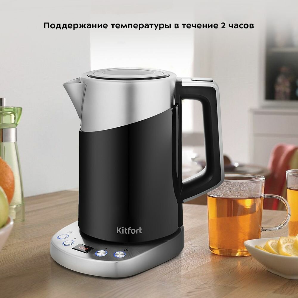 Чайник KITFORT КТ-660-2, 1,7 л, 2200 Вт, закрытый нагревательный элемент, терморегулятор, двойные стенки, черный