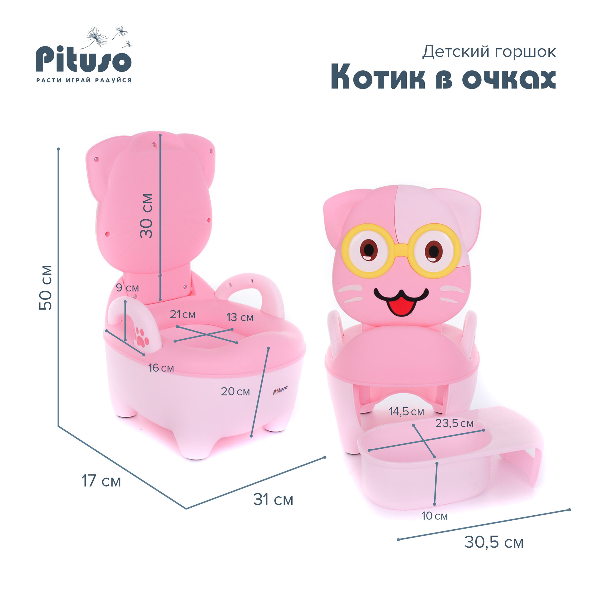 Купить Детский горшок Pituso Котик в очках Розовый Pink