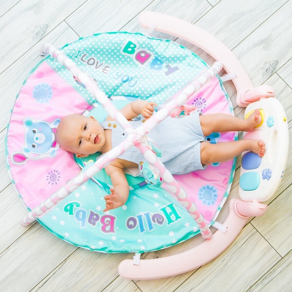 | Минусы: | Ребенку вообще не интересны висящие игрушки и размеры коврика маленькие. Да и дуги не крепкие, и легкий может перевернуться |