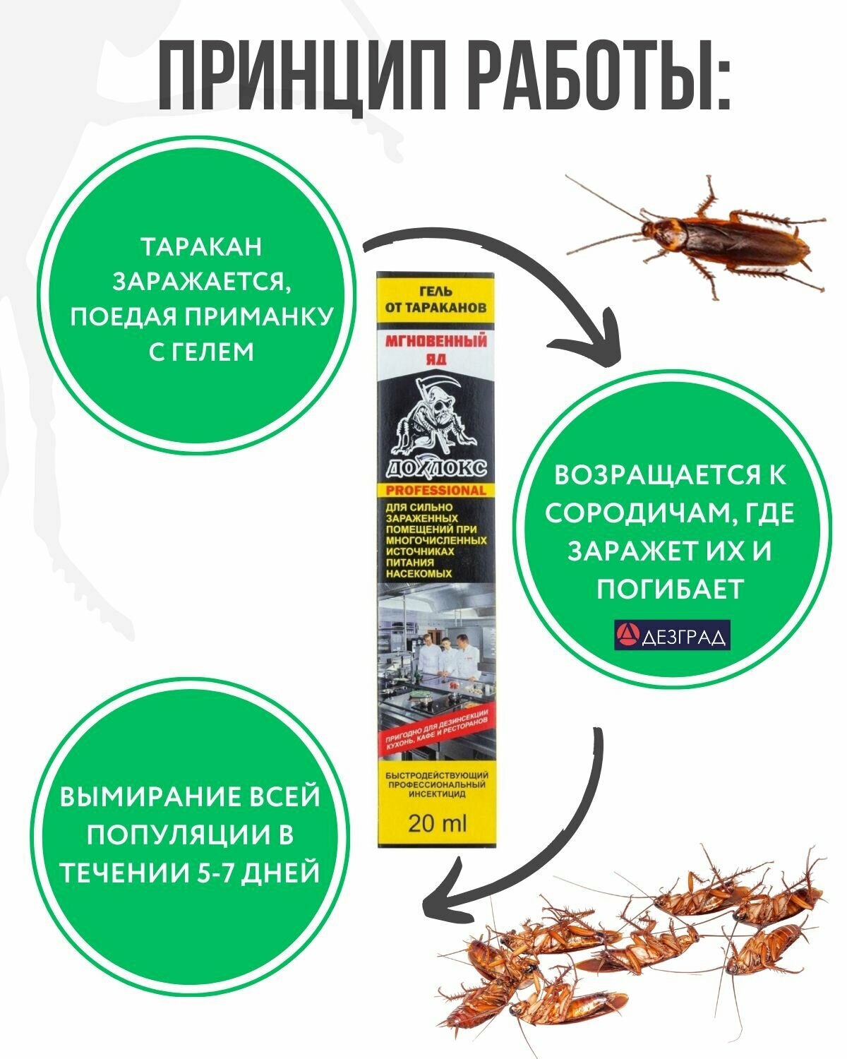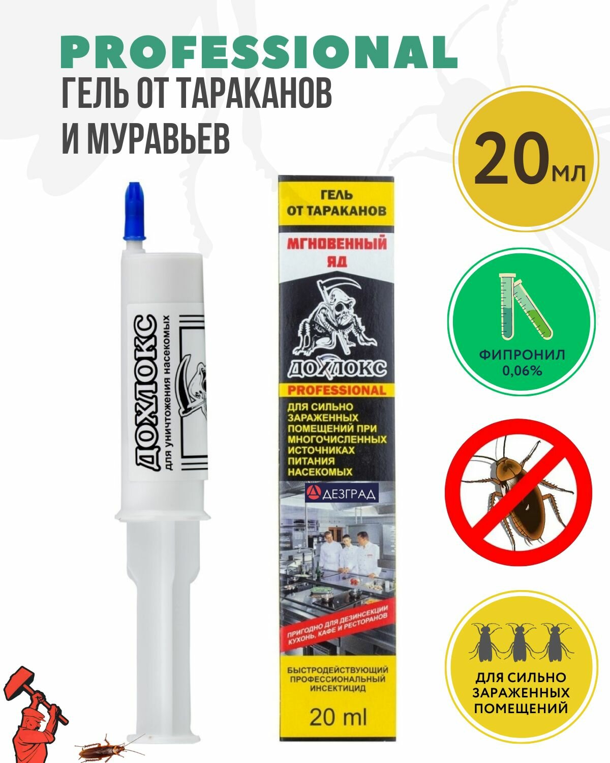Гель Дохлокс Professional "Мгновенный яд" от тараканов, 20 мл