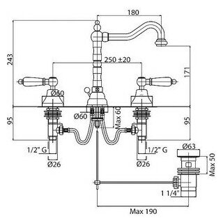 Cezares Смеситель для раковины на три отверстия с донным клапаном CEZARES FIRST-BLS2-02-Bi