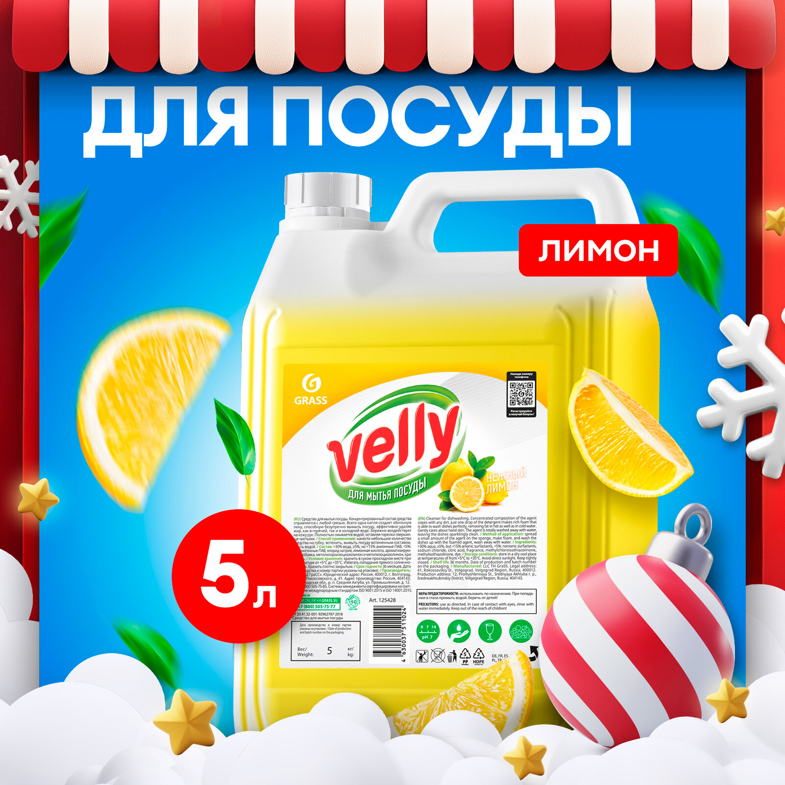 125428_средство для мытья посуды velly лимон 5кг\