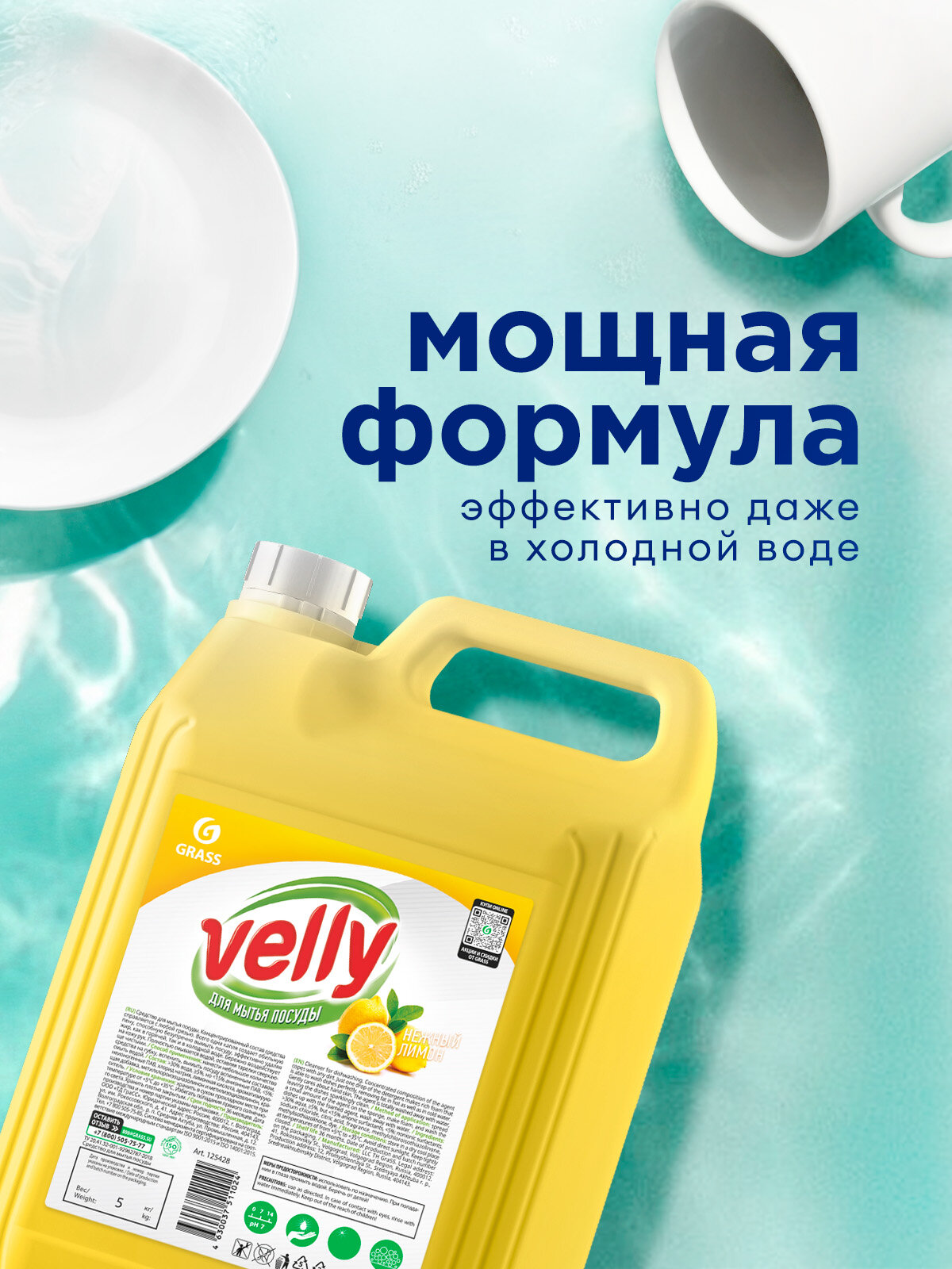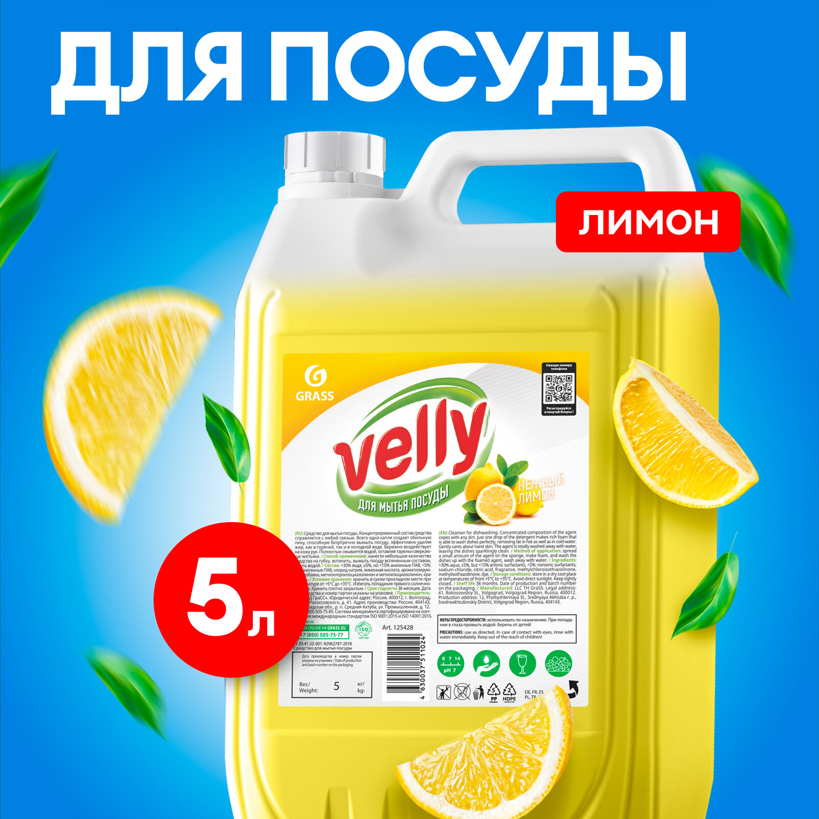 Grass Средство для мытья посуды Velly лимон универсальное моющее гель для кухни 5 литров