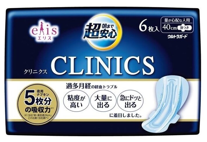 Прокладки гигиенические Elis Clinics при гиперменореи, 6+ капель, 6 шт, длина 40 см