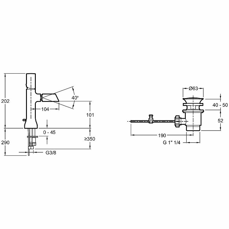 | Длина излива | 104 мм |
