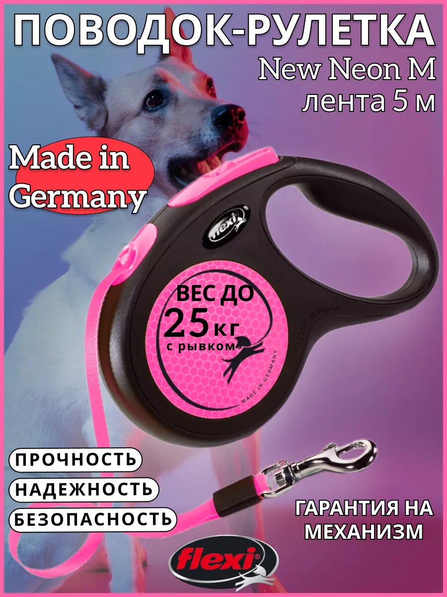 flexi рулетка Neon M (до 25 кг) лента 5 м .
