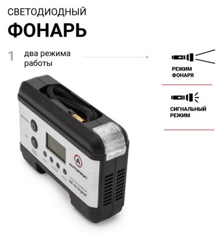 Цифровой компрессор AUTOPROFI, 30 л./мин., "4 в 1", 12V/15A, 140W, 7 Атм. AK-35 Digital