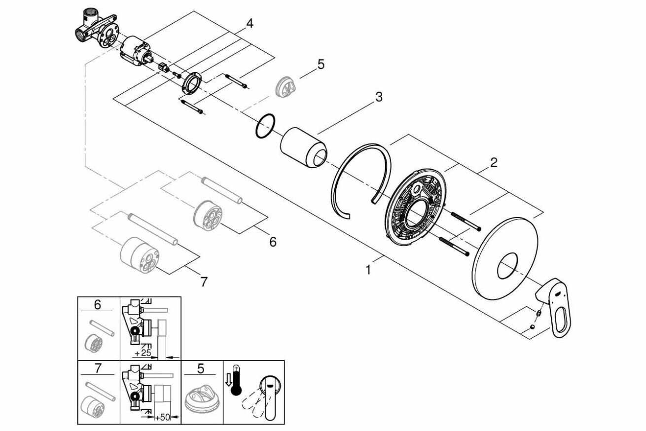 Смеситель для душа GROHE BauLoop скрытого монтажа, в комплекте с монтажной частью, хром (29080000)