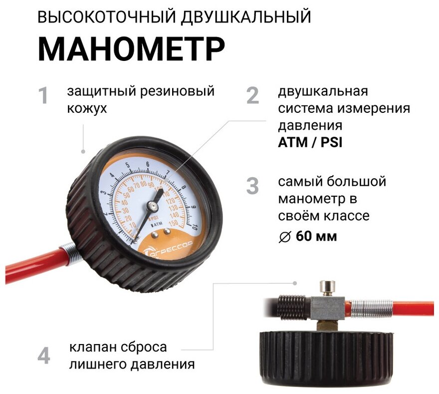 | Плюсы: | Производительность, длинный шланг, манометр |
