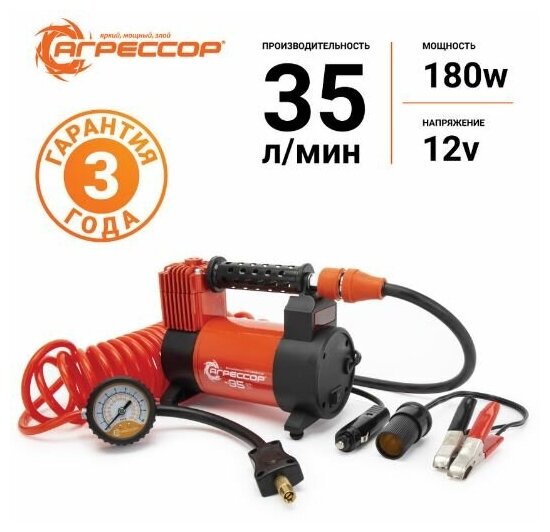 Компрессор автомобильный 180 Вт. "Агрессор" AGR-35
