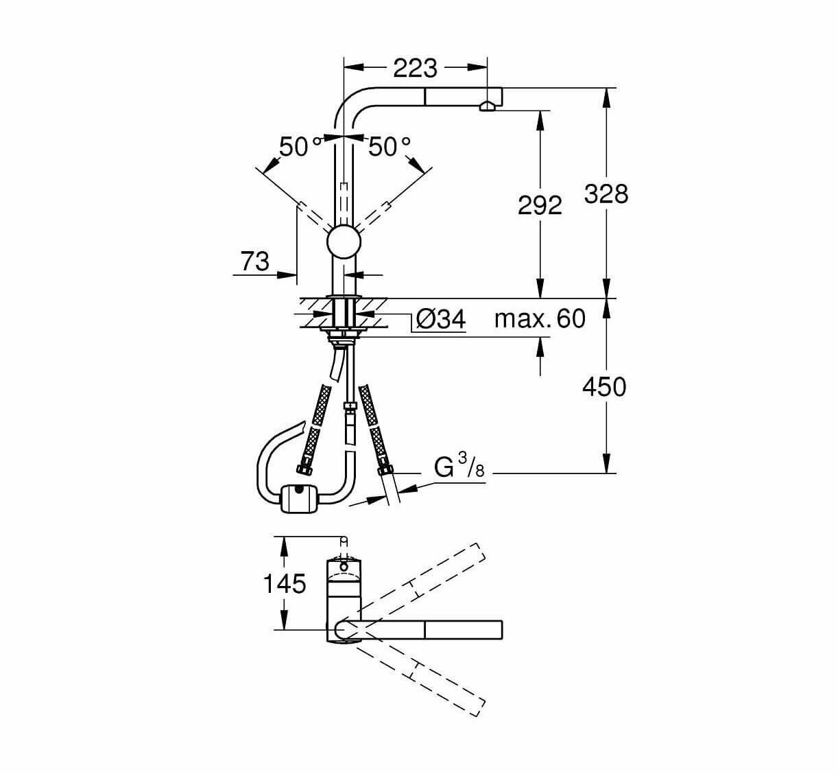 Смеситель для кухни Grohe Minta, выдвижной L-излив, нержавеющая сталь 32168DC0