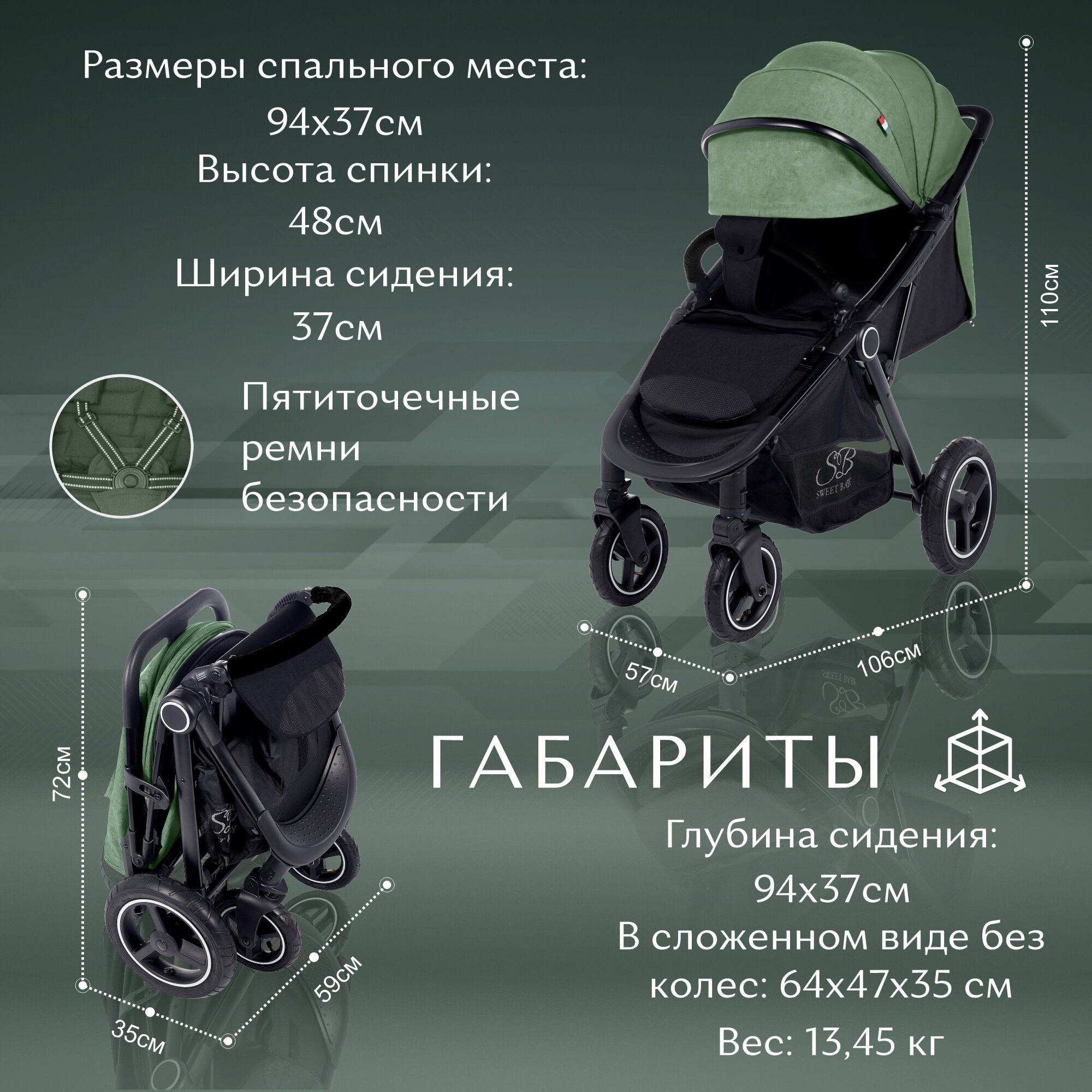 Всесезонная прогулочная коляска с надувными колесами Sweet Baby Suburban Compatto Silver Dark Green (Air)