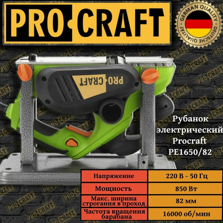 Рубанок электрический переворотный Procraft PE 1650, нож 82мм, глубина 3мм, 16000об/мин, 850Вт